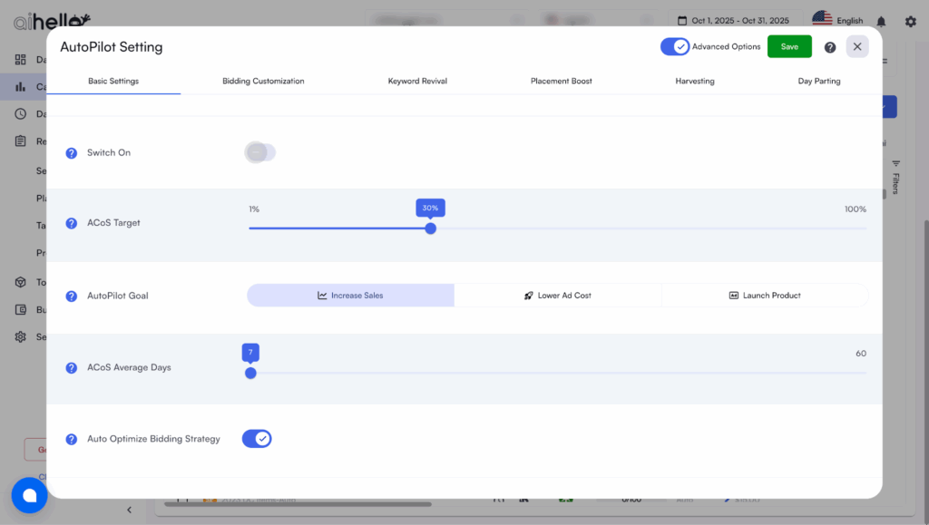 AiHello aligns perfectly with this reality. AutoPilot optimises toward effective ROAS (profit-weighted) rather than rigid ACOS, automatically scaling bids up or down based on conversion strength, not vanity metrics. It breaks ACOS rules intelligently when margin compression or growth potential demand it.