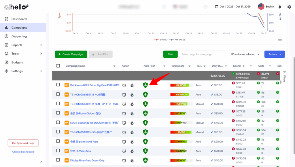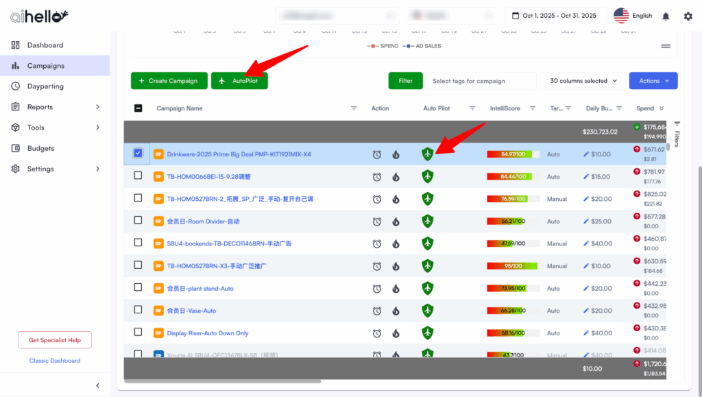 Many automation tools react too hard, spiking bids 40% up or crashing them when the algorithm misreads a single day’s dip. The result: oscillating CPCs and unstable spending. AiHello’s AutoPilot is built to avoid these dumb swings.